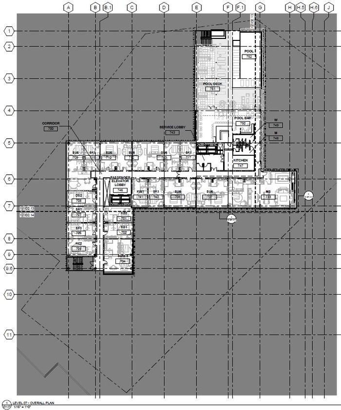 A team of 2-3 Square Feet Studio members documented the interior architecture for an 8 level boutique hotel in collaboration with Knibb Design (interior design/ landscape) and Portman Architects (Architecture). Square Feet Studio was also responsible for the design and FF&E of all back of house spaces.